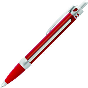 Retractable plastic ball pen with a soft rubber grip and metallic silver trim. It has a unique spring-loaded, pull out banner which can be branded in full colour on both sides. Mystery Banner Pen has a blue or black refill with 1200 metres of German manufactured Dokumental ink and a tungsten carbide ball for improved writing quality. A production lead time of 30 working days applies to this product by air freight and larger orders can be sea freighted on request to reduce the freight cost. Decoration is by pad printing onto the barrel PLUS CMYK full colour off set printing onto the banner.