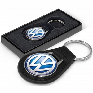 Genuine leather key ring with a round metal plate for branding with a resin coated finish. It is nicely presented in a Black gift box. Decoration is by a CMYK full colour printed and resin coated badge. PLEASE NOTE - prices INCLUDE the badge printing. Minimum order: 100    Lead time: 3 week lead time