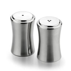 Perfect accessory for the table. Set of 2 salt and pepper holders in a shiny nickel finish. Supplied in a two-part gift box.Shiny nickel salt & pepper shakers. Engraves silver