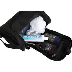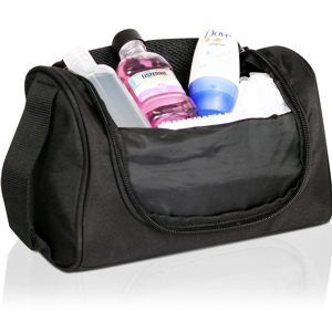 Made from 300D Polyester with Ballistic Nylon trim. Large main compartment wtih double zip pullers. Internal zippered mesh pocket under flap. Two internal side elastic mesh pockets. Multiple internal elastic pockets. Side grab handles. Webbing and Velcro hook for hanging. Decoration is by screen printing. Minimum order: 100   Decorated orders:  2 week lead time